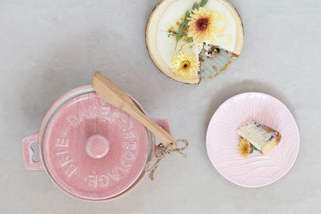 Stoneware Brie Baker with Bamboo Spreader, Reactive Glaze, Pink