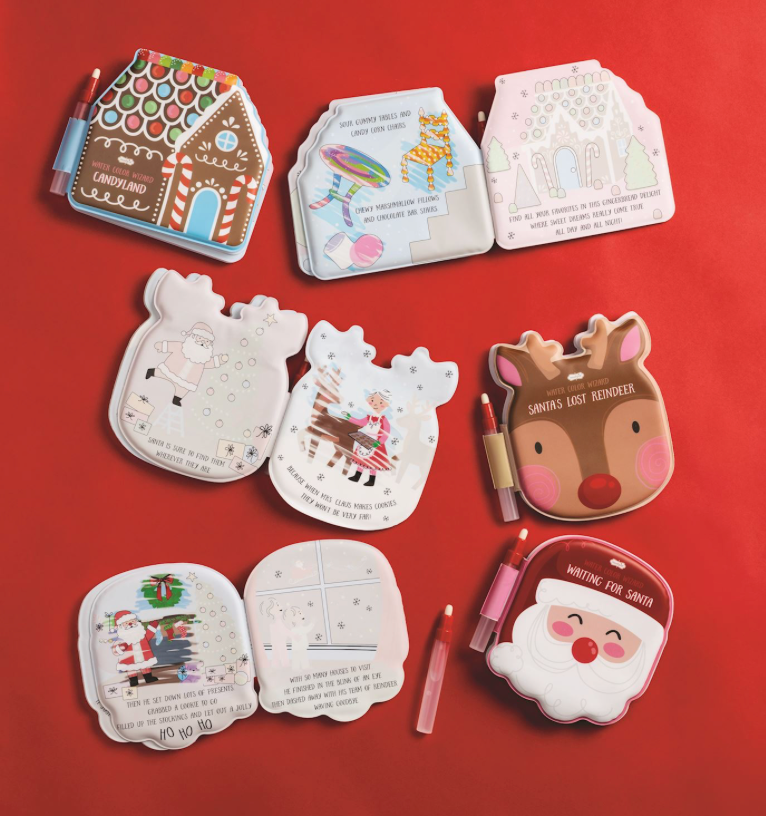 Water activated color changing book comes with water pen. Color the pages to reveal where Santa's lost reindeer are hiding.