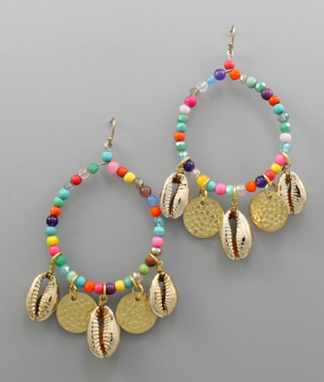 Cowry Shell Beaded Hoops