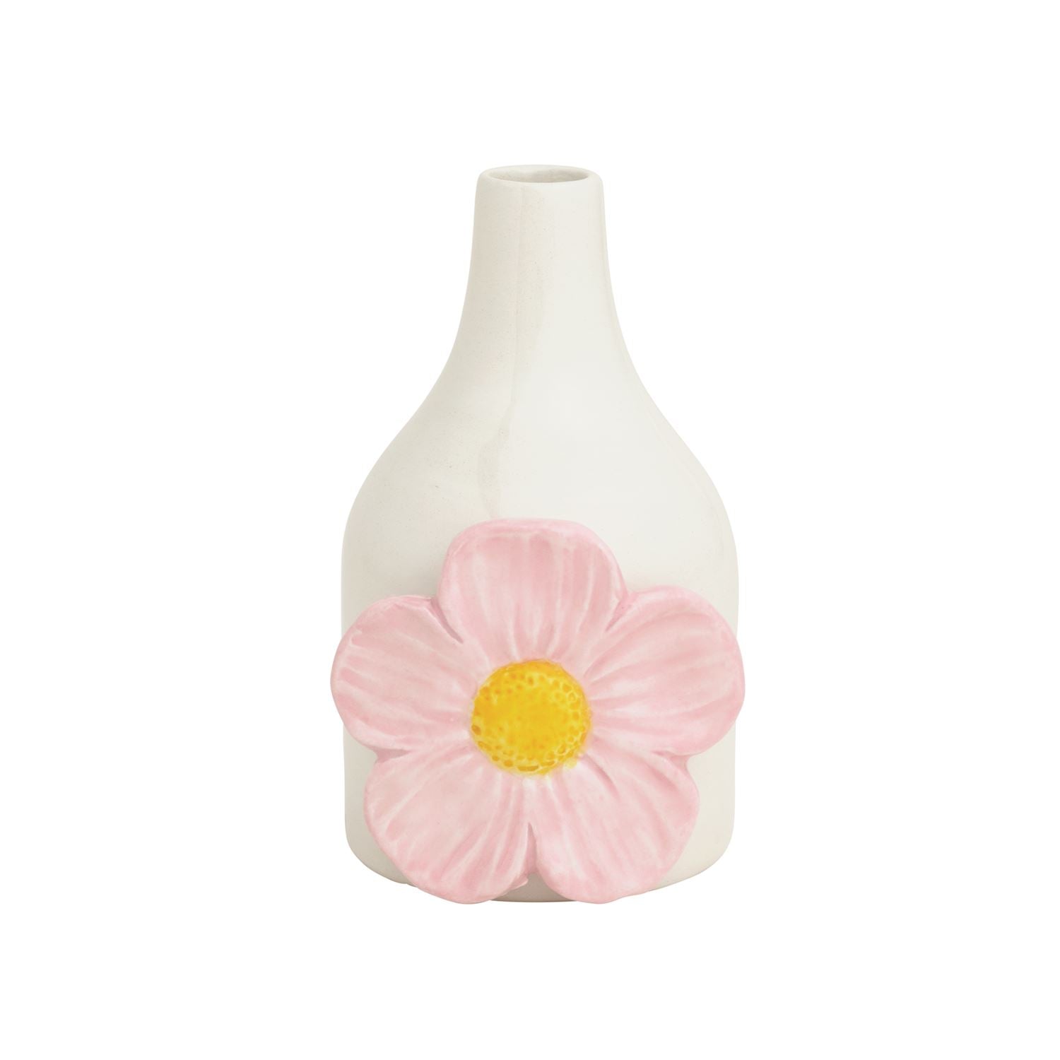 Ceramic vase features hand-painted flower attachments.