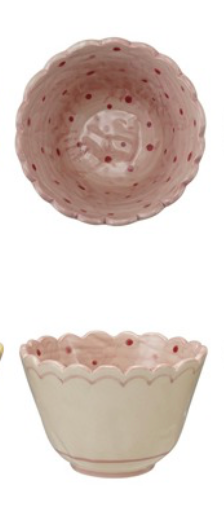Add a touch of whimsy to your table with this hand-painted stoneware scalloped bowl. The intricate design features a playful pattern of colorful dots in three vibrant hues, adding a pop of color and personality to your dining experience. Each bowl is carefully crafted by skilled artisans, making it unique and one-of-a-kind. The scalloped edges add a touch of elegance, making it perfect for serving salads, soups, or snacks. Whether you're hosting a dinner party or enjoying a meal at home, this charming bowl is sure to impress your guests and elevate your table setting. Bring joy and style to your dining experience with this delightful hand-painted stoneware bowl.