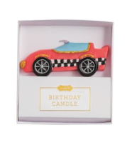 Wax figural shaped birthday candle in acetate box.