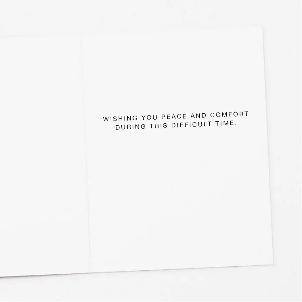 - Inside greeting: “WISHING YOU PEACE AND COMFORT DURING THIS DIFFICULT TIME."