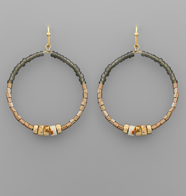 Stone & Bead Circle Earrings