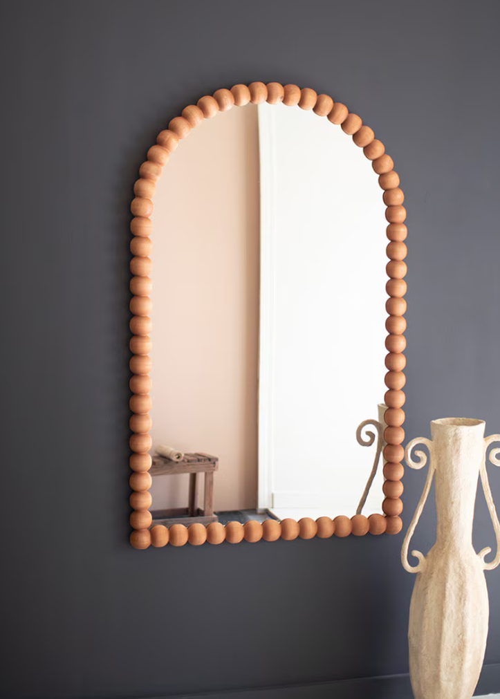 Mirror mirror. This arched mirror surrounded by wooden balls works beautifully as an entryway mirror for small spaces or an accent piece in a collection of wooden frames. Make it the centerpiece of other crafty pieces or let it stand alone.